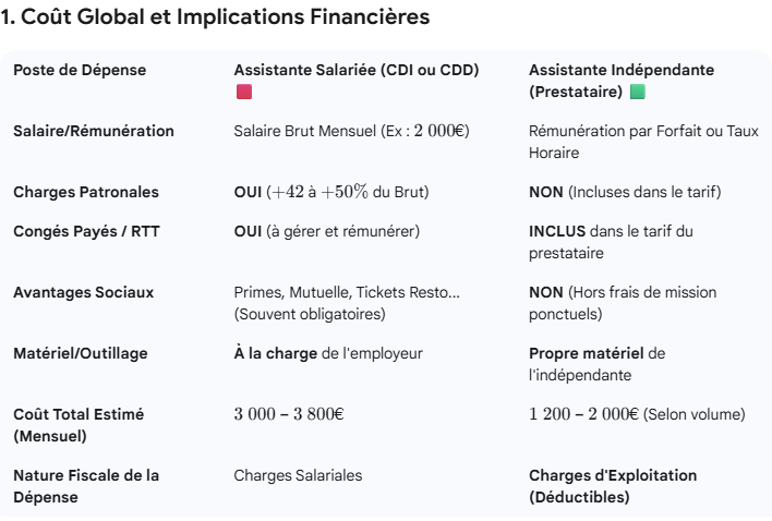 Pour les dirigeants de TPE, professions libérales ou entrepreneurs individuels, déléguer la gestion administrative est souvent indispensable. Mais faut-il embaucher une assistante salariée ou faire appel à une indépendante ? Ce choix impacte les finances, la flexibilité, la sécurité juridique et la charge mentale du dirigeant.